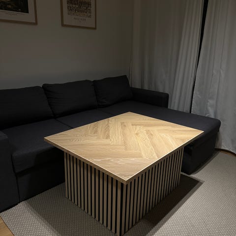 Flot og stilrent sofabord fra H&M Home i mørkebrunt trælook (model 1271404001), som ses på H&M’s officielle side: https://www2.hm.com/da_dk/productpage.1271404001.html