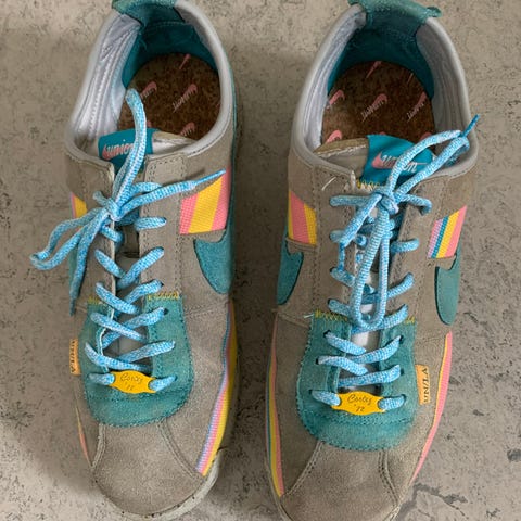 Skoene er i pæn brugt stand med let slid på sålerne.