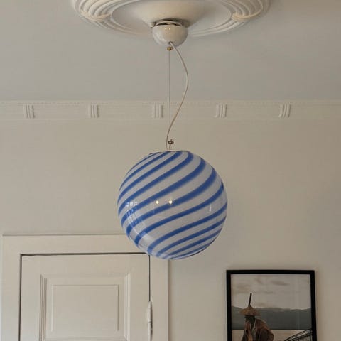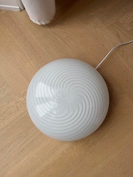 Stor Murano pendel m. gul swirl, 40 cm