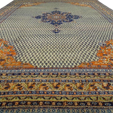 Oprindelse: Indien; Model: Mir - Gereinigd; håndknyttet orientalsk tæppe af uld på bomuld, 290 × 297 cm, i meget god stand og professionelt renset. Klik på den blå "gå til varen" knap, for at købe eller byde på denne vare. Den samlede pris vil blive vist inden du afgiver dit bud.