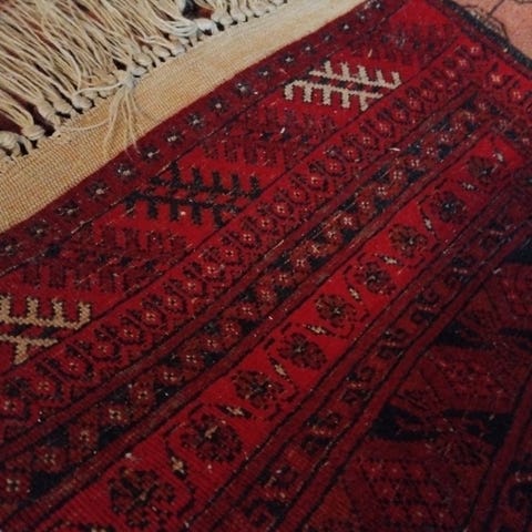 Håndknyttet tæppe fra Fars-regionen i Iran i uld. Grunden for konstruktionen er den samme for alle: Giordes-knude, vævning og luv i uld, dvs. et tæppe 100% uld, med en meget høj knudedensitet, omkring 250.000 knuder per kvadratmeter. Der bruges den fineste uld fra dyret, særligt omkring halsen og maven på fåret (Kork-uld). Importeret fra Iran mellem 2010 og 2015.