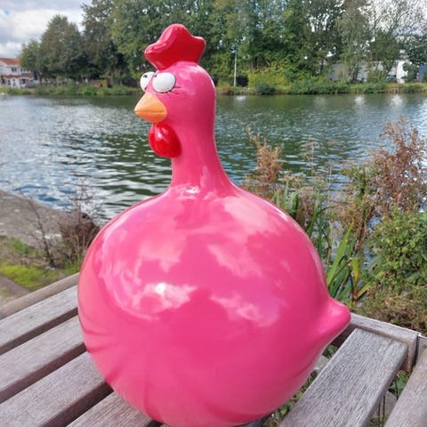 Denne detaljerede høne er lavet af solidt genbrugsmetal. Dette solide objekt er gennemført ned til mindste detalje og er særligt dekorativt. Denne skulptur er behandlet med lak og kan også stå udendørs. Når denne skulptur står på en forhøjning, kommer den endnu mere til sin ret.