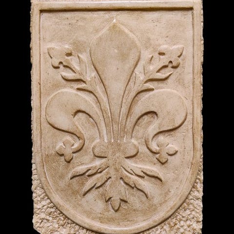 Særligt skulpturværk, der viser 'Leone Vegliante' i al sin unikke form, helt håndfærdigt færdiggjort (støbning i sten).