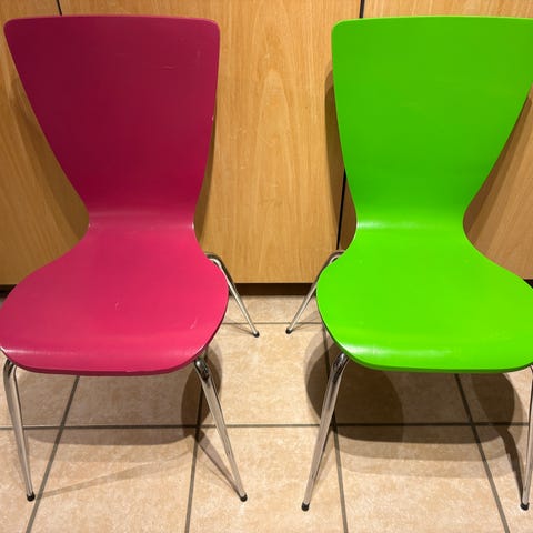 2 stole med grøn betræk- 100,-