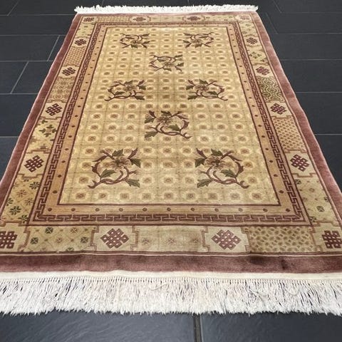 Der tilbydes et håndknyttet orientalsk tæppe fra Kina.