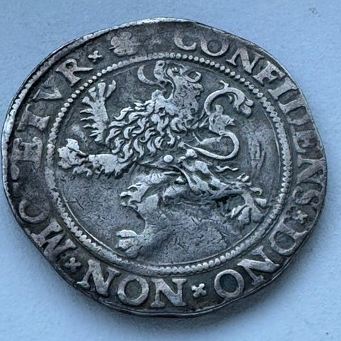 Sjælden og historisk yderst betydningsfuld løvedaler, slået i Zwolle i 1648, det år hvor 80-års-krigen (1568–1648) blev afsluttet med Münster-freden. Med denne fred anerkendte Spanien officielt suveræniteten for Republiken De Syv Forenede Nederlandene.