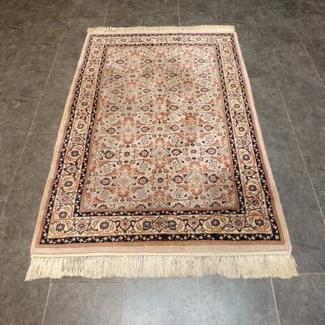 Indien oprindelse håndstrikket tæppe af uld på bomuld, 240 × 265 cm, fra slutningen af det 20. århundrede, i meget god stand. Klik på den blå "gå til varen" knap, for at købe eller byde på denne vare. Den samlede pris vil blive vist inden du afgiver dit bud.