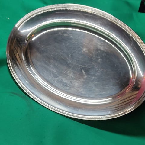 Fremragende ovalt serveringsfad i stål.