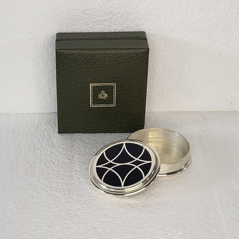Låget er mærket „Christofle France” og er af høj kvalitet sølvbelagt (silver-plated), som det er sædvanligt for Christofle-objekter fra denne kollektion.