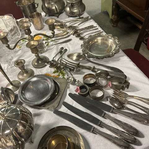 12 stykker af knive, gafler, skeer, kaffeskeer og kagegafler