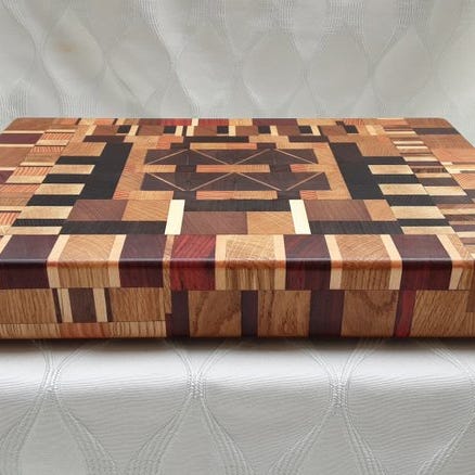 Bakke - Skærebræt af massivt træ med flere træsorter: wenge, oliventræ, iroko...