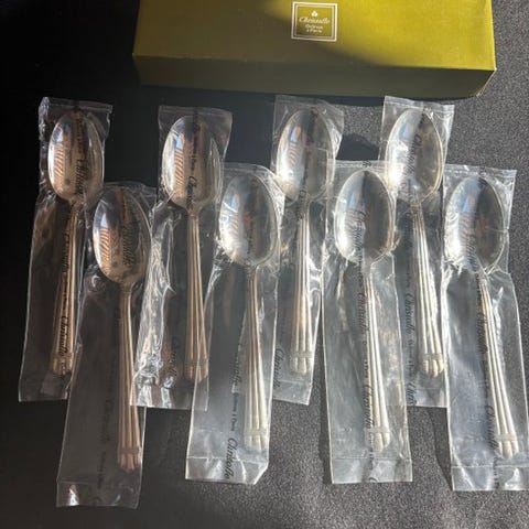 Perfekt tilstand til dette sæt i sølvbelagt metal og blondt horn