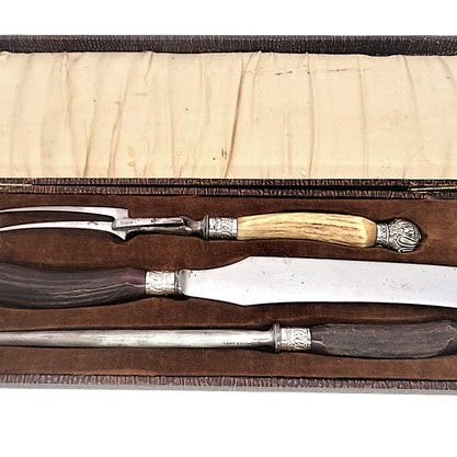 NewBridge bestiksæt, fremstillet i Irland i 1990'erne, med det tidløse Classic Antique-mønster. Fremstillet af højkvalitets rustfrit stål med en fremragende sølvbelægning, er dette et raffineret og solidt sæt designet til at holde i generationer.