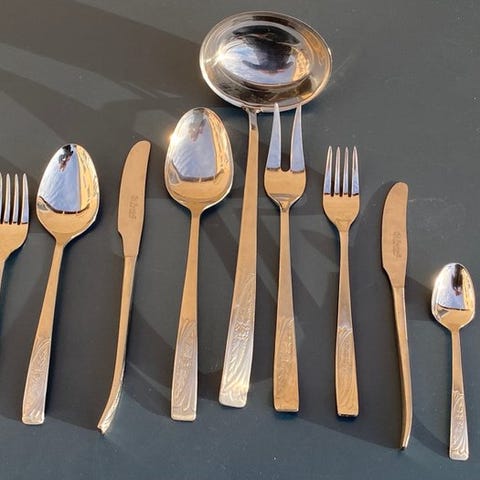 Rar og elegant bestikservice fra Inoxpran, model Prandelli, ægte udtryk for italiensk industriel design fra 1970'erne.