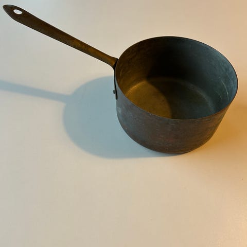 Jeg sælger denne lille gryde i kobber, messing og jern.