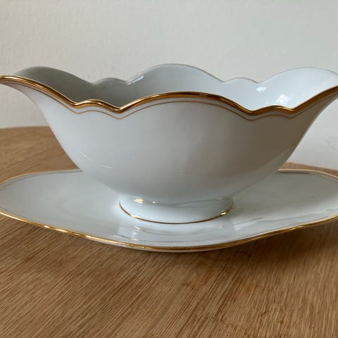 Meget fin karfoffelskål med låg samt 2 fine sauceskåle med intakt guldkant.
