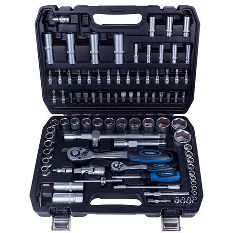 Kompakt topnøglesæt fra Hyundai med det mest brugte. Leveres med skraldenøgle, 12 toppe og 14 bits (lige, phillips, torx, hex) i høj kvalitet. Består af: 1/4" skraldenøgle 1/4" 12 stk. toppe: 4 - 4,5 - 5 - 6 - 7 - 8 - 9 - 10 - 11 - 12 - 13 - 14 mm 1/4" 14 stk. bits: SL4-5,5-7, HW4-5-6-7, T10-15-20-25-30, PH1-2 + holder til alle delene.