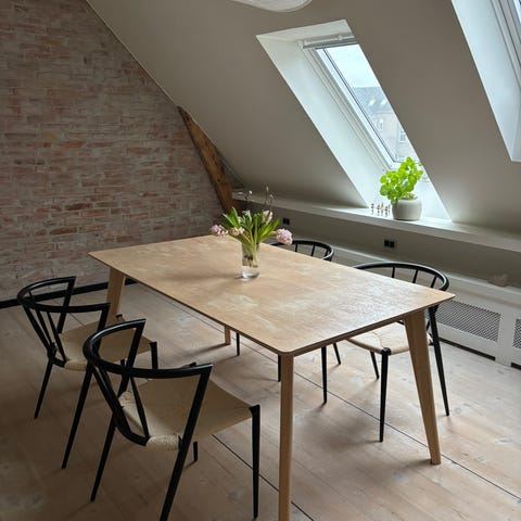 Spisebord med egetræsbord.