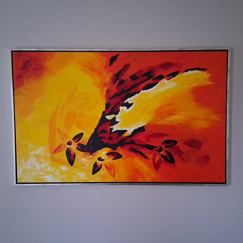 Smukt værk af Camilla West, Uddannet på Fyns kunstakademi, er kendt for hendes abstrakte og alligevel genkendelige landskaber. Rolige og enkle i udtrykket og bag dem ligger flere timers arbejde. Dette er inspireret af naturen i Skagen, hvor hun ad flere omgange har arbejdet med sin kunst. 160x180 cm