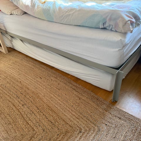 Grå Hay seng med lameller og lækker wellpur madras Gold (medium hård) i perfekt stand sælges. Næsten ikke brugt.