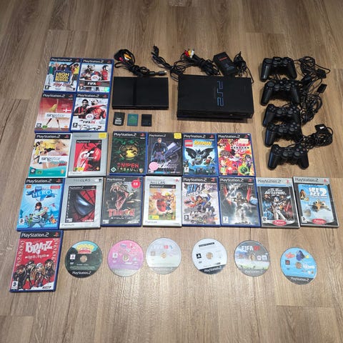 Komplet PlayStation 2 (PS2) konsolpakke sælges.
