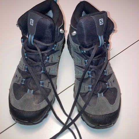 Salomon ortolite vandrestøvler i størrelse 45½. Farven er sort, og skoene er fremstillet med ortolite indlæg for komfort. Velegnede til udendørs brug og vandreture.
