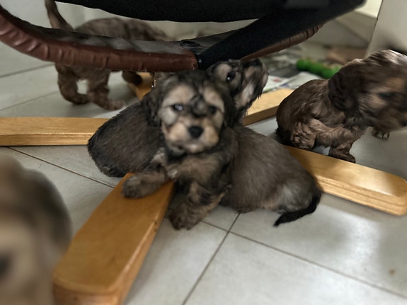 Efter de smukkeste og kærligste forældre. Hvalpene er vant til børn og andre hunde. De er renligheds trænet og vant til lyde i dagligdagen som radio, vaskemaskine, støvsuger osv.. de har prøvet at køre med i bil