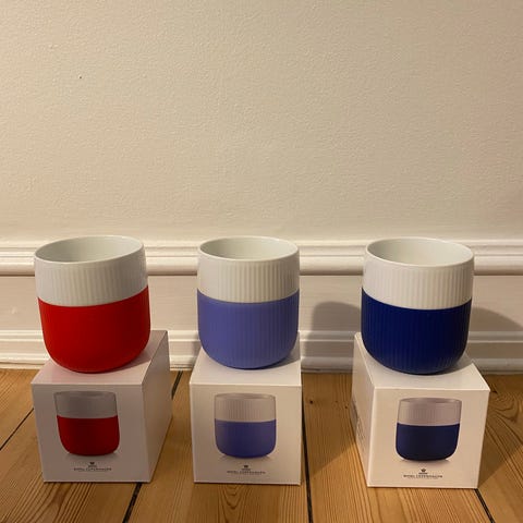 Begge krus er aldrig brugt, og sendes i original emballage, som vist på billederne.