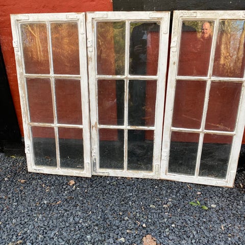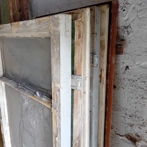 Antikt trævindue med kittede glas og sprosser