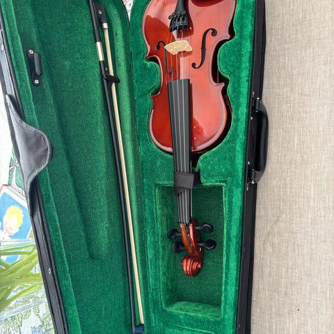 Violinen er som ny, i meget flot stand og helt spil klar. Ideel til børn eller unge på begynderniveau eller let øvet niveau.