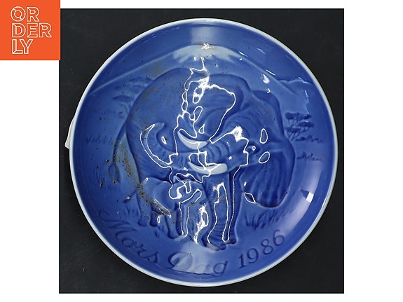 Dekorativ porcelænstallerken med et blomstermønster i blå og grønne nuancer. Tallerkenen har en diameter på Ø 23 cm og har en krog på bagsiden til ophængning. Bagsiden viser også et stempel fra producenten.