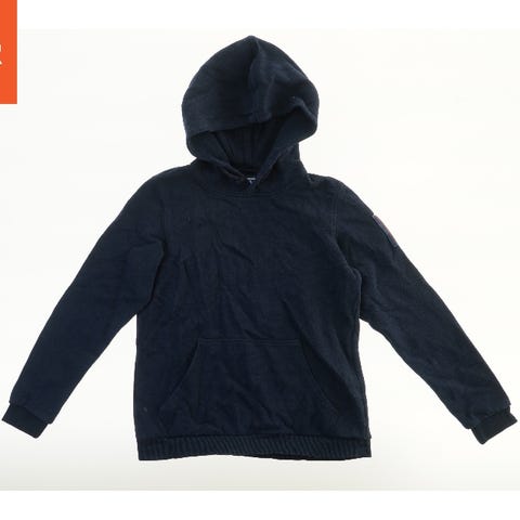 Denne sort hættetrøje har en kængurulomme foran og en justerbar hætte. På ærmet er der et mærke. Trøjen har lange ærmer og ribkanter ved ærmeafslutningerne og bunden.