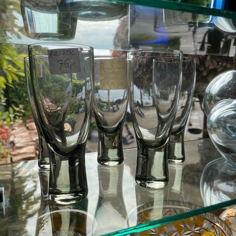 6 stk. vandglas smoke H 10,5 cm pr. 30,-