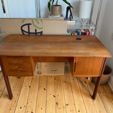 Skrivebordet kan skilles ad i to dele, så det er nemt at flytte.