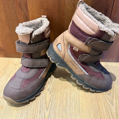 Bisgaard børnestøvler til unisex i størrelse 38. Støvlerne er grå og har en varm foring, der egner sig til koldt vejr. De har velcrolukning for nem tilpasning og en slidstærk sål med godt greb. Der er mindre brugsspor på indersiden af skaftet.