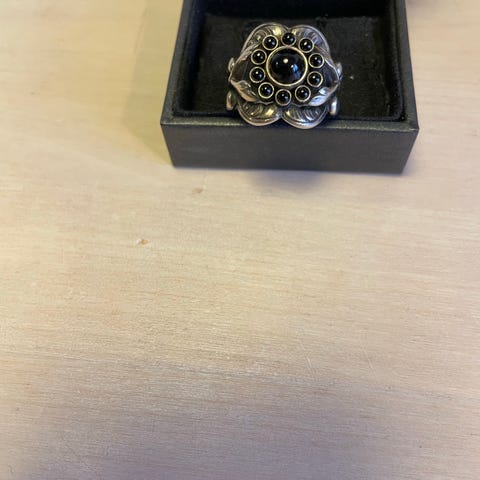 Elegant sølvring fra Georg Jensen model "Flower" med en smuk sort aga sten.