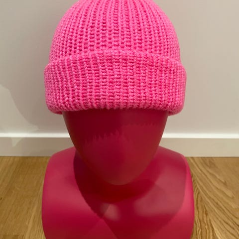 Helt ny hvid meget blød og varm dobbeltlags hue i ribbet strik der strækker godt og derfor passer langt de fleste