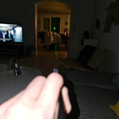 Brug over lange afstande: Fjernbetjeningsfunktionen fungerer i en afstand på op til 11 meter. Den infrarøde laserpen fungerer i en afstand på op til 15 meter.