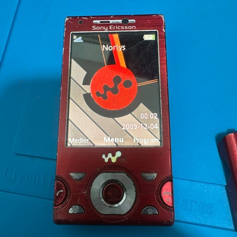 - Oplader (der er gået lidt fra i gummiet, men kablerne er stadig isoleret