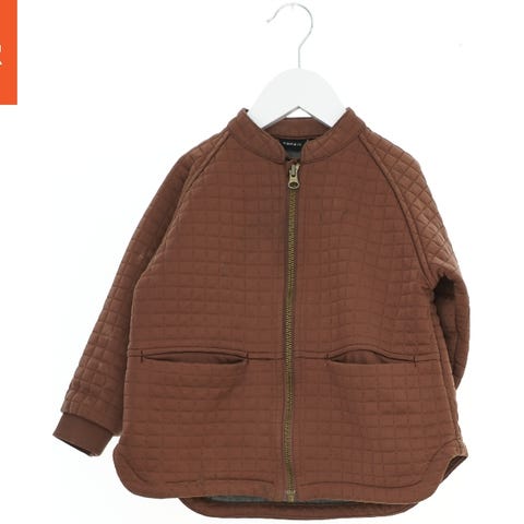 Børnejakke med all-over print af forskellige vintage fly. Jakken har en hætte, lynlås foran og ribkanter ved ærmerne. Jakken er brun med nuancer i blå, grøn og orange på flyene.