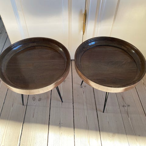 Sidebord/sofabord udført i bæredygtigt høstet naturlig mango træ med stålben designet af Ayush Kasliwa