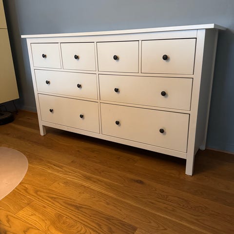 Den populære Hemnes kommode, fra IKEA med 8 skuffer, mål på sidste billede.