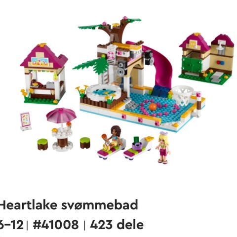 Lego Friends, Heartlake svømmebad 41008 og Emmas mini pool 3931. Alle klodser er der. Vejledning følger med.