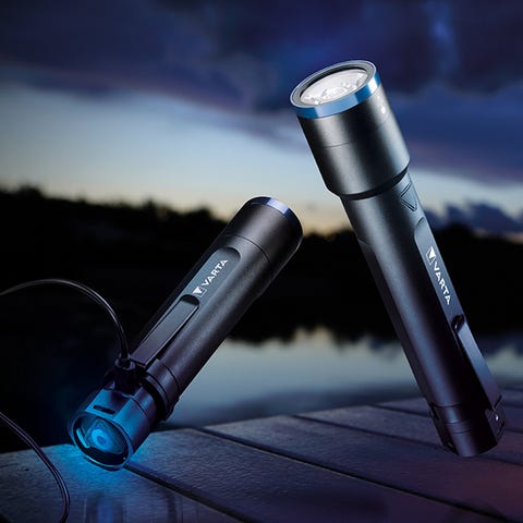Denne sorte LED lommelygte er 19 cm lang og har et robust design med en grebvenlig overflade. Den har en stor lysende overflade med adskillige LED-pærer og kommer med en håndledsrem for nem transport og sikkerhed. Lygten er ideel til udendørs brug eller i situationer, hvor der er behov for kraftigt lys.