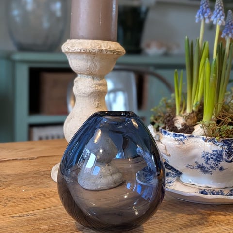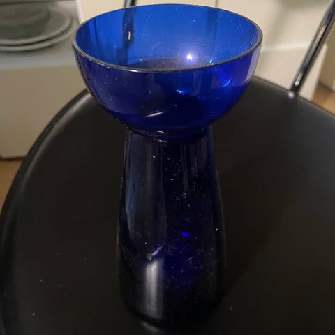 Blå Holmegaard vase (str. 16x6x6 cm)