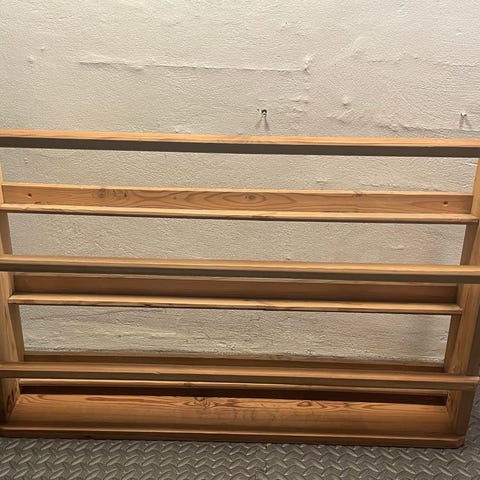 Stor og flot tallerkenrække. Købt af en, der har taget den med hjem fra Sverige. Har givet 1.000 kr for den, og sælger den til det halve. Så smuk og sød. Antik / retro look. Den måler: 96 cm i højden, 93 cm i bredden, og hylden er 20 cm dyb. En fin mulighed for at bringe et touch ind j dit hjem, som ingen andre har. Den kommer med en masse charme. Lyseblå. Æstetik i topform. Se mål på billede. Hentes i Skovlunde. Sender den ikke. Retro / antik. Bogkasse / bogreol.