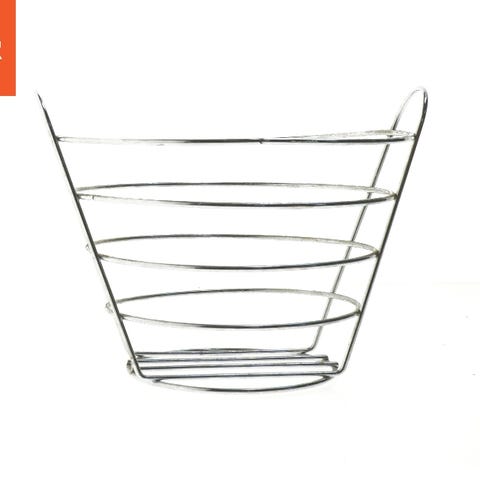 Et sæt af to grå trådkurve ideelle til opbevaring. Ved at stable dem kan du udnytte pladsen bedst muligt. Vend håndtaget på den nederste kurv indad og placer den anden ovenpå.