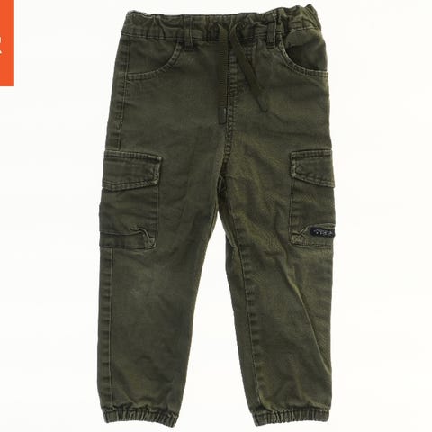 Børnecargobukser med elastisk talje og snøre. Bukserne har flere lommer, herunder sidelommer, og elastik ved anklerne.