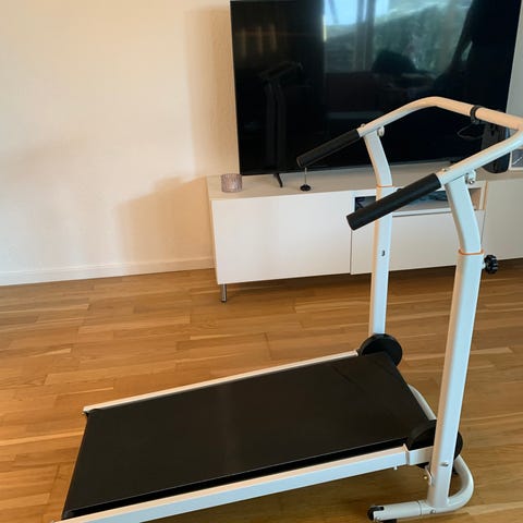 Løbe/gå bånd fra Officefit som kan tilpasses til dit hæve/sænkebord og Bluetooth. Der medfølger panel med forskellige programmer og nødstop.