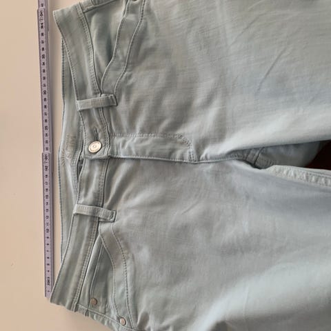78 cm til skridt og totallængde er 107 cm. Benvidde for neden er 32 cm.